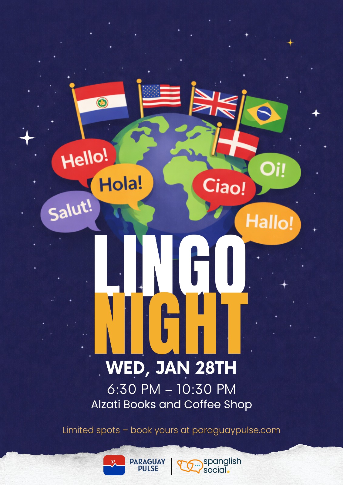 RESCHEDULED EVENT to Wednesday, February 4th | Join a social language exchange night to meet people from around the world, practice languages beyond English and Spanish, and make new friends. Hosted by Spanglish Social and Paraguay Pulse. Advance registration required.